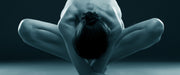 Nackte Frau in besonderer Yogapose, Glasbild Panorama