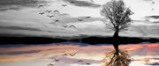 Baum der sich im Wasser spiegelt, Glasbild Panorama