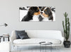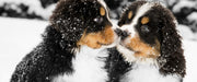 Bernersennenhunde im Schnee, Glasbild Panorama