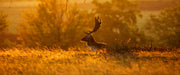 Damhirschbock Herbstmorgen, Glasbild Panorama