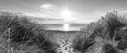 der Weg ins Meer Kunst B&W, Glasbild Panorama