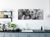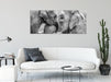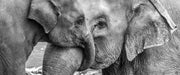 Elefantenmutter mit Kalb B&W, Glasbild Panorama