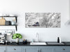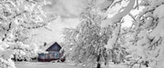 Hütte in schöner Winterlandschaft, Glasbild Panorama