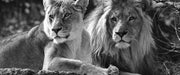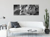 interessiertes Löwenpaar Kunst B&W, Glasbild Panorama