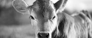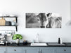 Junge Kuh Kälbchen Kunst B&W, Glasbild Panorama
