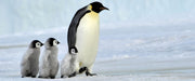 Kaiserpinguine im Schnee, Glasbild Panorama