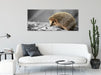 kleiner süßer Igel im Laub, Glasbild Panorama
