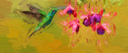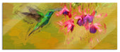 Kolibri trinkt vom Blütennektar, Glasbild Panorama