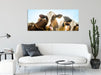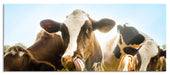 Kühe weiden in der Sonne auf grüner Alm, Glasbild Panorama