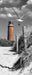 Leuchtturm mit Möwe an Strandweg, Glasbild Panorama
