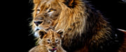 lieber Löwe mit Jungtier, Glasbild Panorama