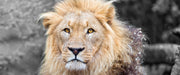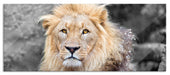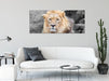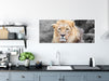 Löwe kuschelt mit Jungtier, Glasbild Panorama