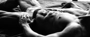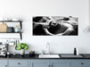 Muskulöser Mann im Bett Kunst B&W, Glasbild Panorama