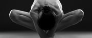 Nackte Frau in besonderer Yogapose, Glasbild Panorama