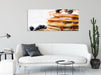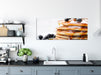 Pancakes mit Sirup und Blaubeeren, Glasbild Panorama