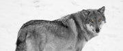 prächtiger Wolf im Schnee, Glasbild Panorama