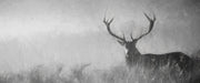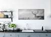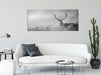 Rotwild Hirsch im Nebel Kunst, Glasbild Panorama