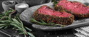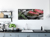 Saftiges Steak Zubereitung, Glasbild Panorama