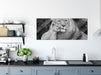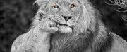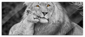 schöner Löwe mit Jungtier, Glasbild Panorama