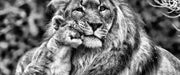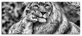 schöner Löwe mit Jungtier, Glasbild Panorama
