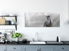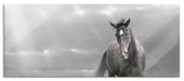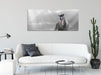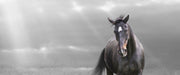 schöner schwarzer Hengst auf Wiese, Glasbild Panorama