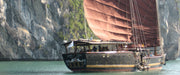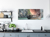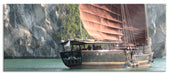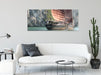 Segelschiff im Sonnenuntergang, Glasbild Panorama