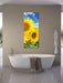Sonnenblumenwiese unter Himmel, Glasbild Panorama