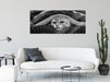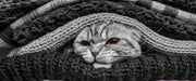 stinkige Katze zwischen Pullovern, Glasbild Panorama