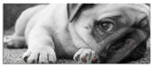 süßer kleiner Mops auf Teppich, Glasbild Panorama