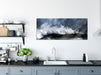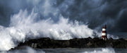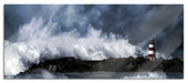 Tobendes Meer mit Leuchtturm, Glasbild Panorama