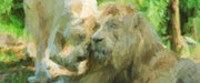 verliebtes Löwenpaar Kunst, Glasbild Panorama