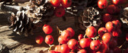 Vogelbeeren und Tannenzapfen, Glasbild Panorama