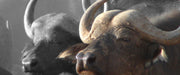 Wasserbüffel genießen die Sonne, Glasbild Panorama