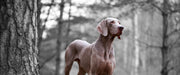 Weimaraner Baumwurzeln, Glasbild Panorama