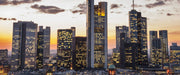 Wolkenkratzer bei Sonnenuntergang, Glasbild Panorama