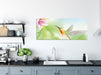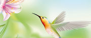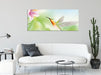 Wunderschöner Kolibri mit Blüte, Glasbild Panorama