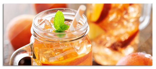 Original Preis64,95 €Erfrischender Pfirsicheistee, Glasbild Panorama