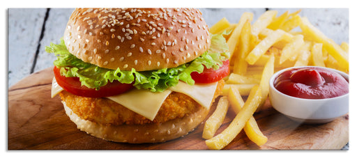 Original Preis64,95 €Chickenburger Pommes, Glasbild Panorama