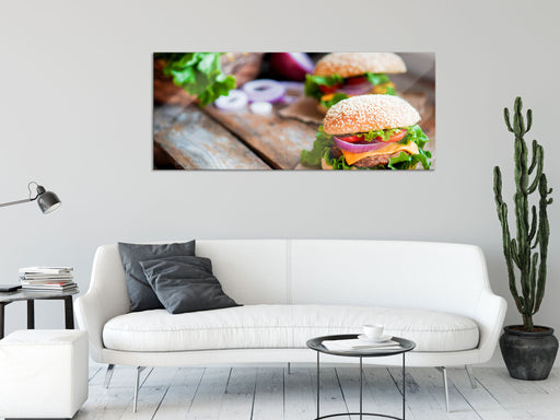 Original Preis64,95 €Leckere Burger, Glasbild Panorama