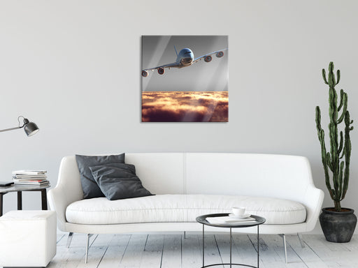 Original Preis34,95 €Flugzeug über Wolken, Glasbild Quadratisch