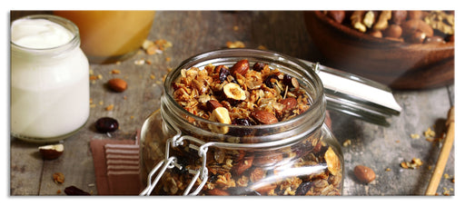 Original Preis64,95 €Jogurt Müsli im Glas, Glasbild Panorama