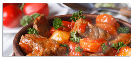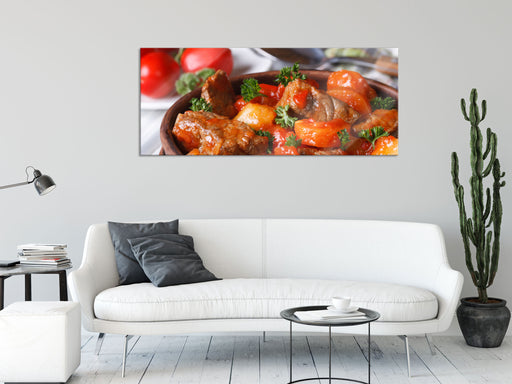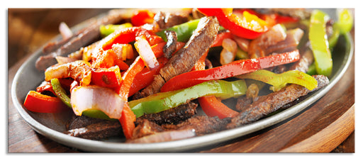 Original Preis64,95 €Fleischpfanne mit Paprika, Glasbild Panorama