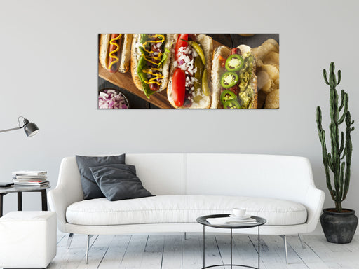 Original Preis64,95 €Amerikanische Hotdogs, Glasbild Panorama