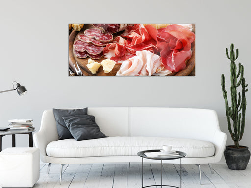 Original Preis64,95 €Brotzeit mit Wurst, Glasbild Panorama