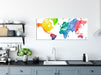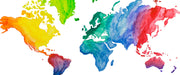 Bunte Weltkarte in Aquarell-Farben, Glasbild Panorama
