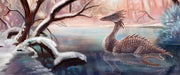 Drache im schneebedeckten Wald, Glasbild Panorama