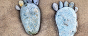 Fußabdrücke mit Steinen gelegt, Glasbild Panorama