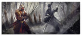 Kampf zwischen Samurai und Ninja, Glasbild Panorama