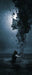 Kniende Frau mit dunklen Dämonen, Glasbild Panorama