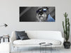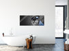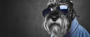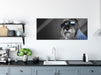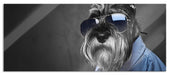 Lustiger Hund mit Hemd und Sonnenbrille B&W Detail, Glasbild Panorama